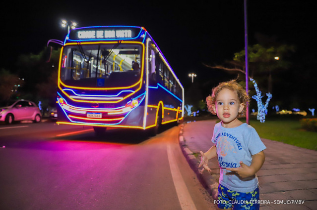 A tradicional decoração natalina de Boa Vista recebeu na noite dessa quarta-feira, 2, mais duas atrações especiais. A prefeitura colocou em circulação dois ônibus enfeitados e com iluminação de natal, que fazem as linhas 112 – Caçari/Equatorial e 252 – Bairro dos Estados. Logo na estreia, os veículos já começaram a encantar as pessoas por onde passam.