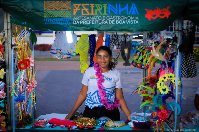 Ao som de marchinhas, com alegria e muita animação, a Feirinha de Artesanato e Gastronomia teve seu retorno nesta sexta, 7, na Praça das Águas, com o Grito de Carnaval. O evento tem como objetivo iniciar as festividades carnavalescas em Boa Vista e fomentar a economia na cidade, o turismo, e o lazer.