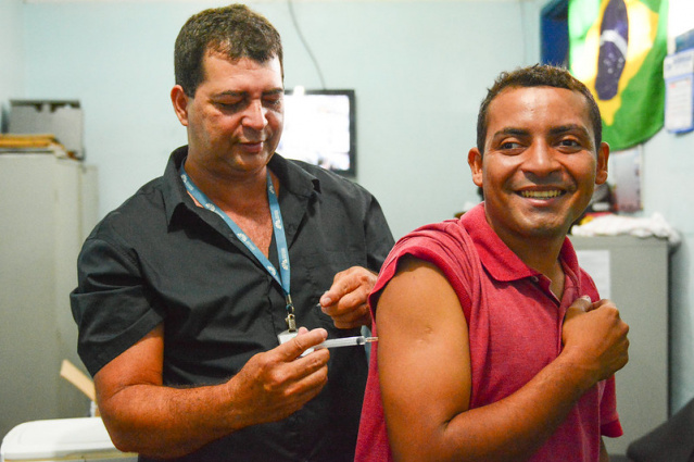 “ Aqui na feira há uma aglomeração de pessoas, é um bom local para se vacinar, pois além de vir fazer as compras, as pessoas já aproveitam para receber a dose da vacina. Como trabalho aqui na feira, isso facilita muito pra mim, em vez de sair para ir até o posto, já tomo a vacina aqui no meu local de trabalho”, contou.