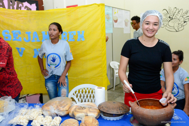 Os jovens da Oficina de Panificação surpreenderam o público com o banquete de pães, bolos e a damorida, comida típica da região. “O projeto já abriu muitas portas para nós, tanto na panificação, como em outras oficinas que o projeto oferece para as pessoas de baixa renda, maioria em situação de vulnerabilidade social. E hoje estamos aqui com vários produtos produzidos por nós, preparados com carinho”, comentou a integrante Marcileia Oliveira.