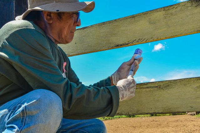 1ª etapa – Neste ano, a vacinação contra febre Aftosa e a vermifugação do rebanho bovino teve início em abril, atendendo 15 comunidades indígenas localizadas nas na Serra da Moça e Baixo São Marcos, além da Comunidade Truaru da Cabeceira. Um total de 3.396 animais foram imunizados.