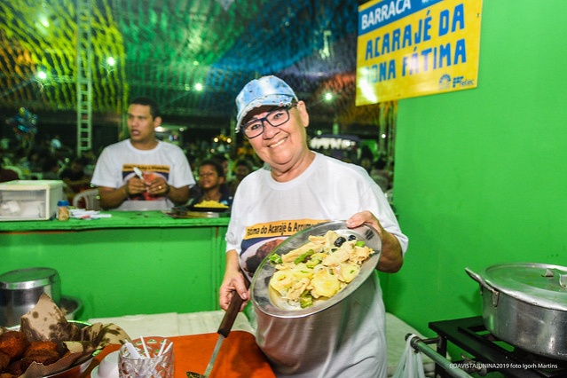 A senhora Fátima Oliveira tem uma barraca de vendas de acarajé e arrumadinho, comidas típicas do nordeste. Ela trabalha no Boa Vista Junina desde o 1° ano e é só elogios à organização do evento. “O faturamento aumenta em 100% no arraial, por isto nunca deixei expor meus pratos aqui. E a cada ano a estrutura está melhor” disse.