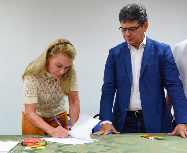 Nesta quinta-feira, 6, a prefeita Teresa Surita, e a s ecretária de Gestão de Pessoas do Tribunal de Justiça de Roraima (TJ/RR) , Bruna França, assinaram o novo Termo de Cooperação Técnica que amplia de 36 para 135 vagas de estágio ofertadas pelo órgão. A ampliação da parceria entre ambos os órgãos aconteceu durante solenidade no auditório do Sebrae/RR.