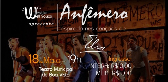 O Teatro Municipal de Boa Vista recebe pela primeira vez neste sábado, 18, o espetáculo musical Anfêmero, apresentado pela Cia Artística Well Souza. O musical foi idealizado em meados de 2018, com uma obra de dança contemporânea inspirada nas belas canções da cantora Elis Regina, ícone da Musica Popular Brasileira nos anos 60 a 90.