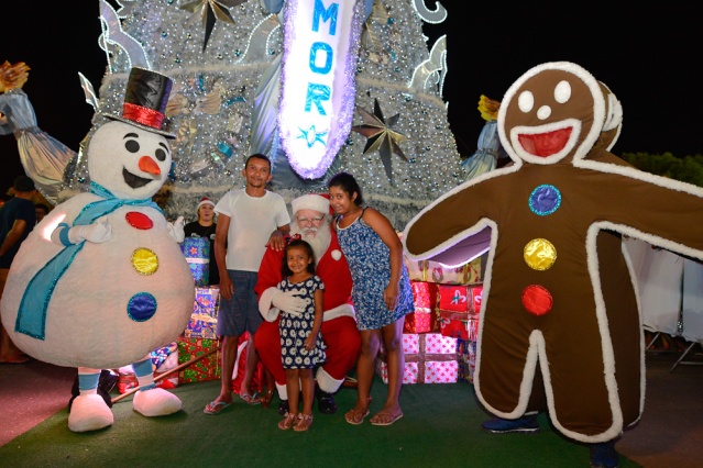 Logo após o acendimento da árvore, quem roubou a cena foi o bom velhinho. A chegada do Papai Noel foi a atração principal da noite para as crianças. A pequena Sophia, filha do carpinteiro Josimar Souza Santos, observava atenta toda a movimentação. Josimar, que reside no bairro Nova Canaã contou que sempre leva as filhas para passear no Parque Germano Sampaio e na época do Natal não é diferente.