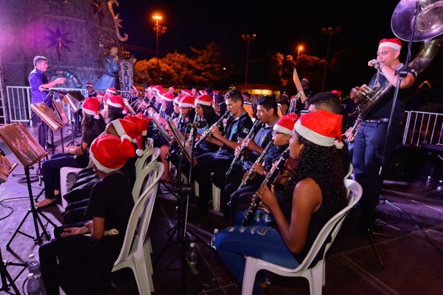A noite desta sexta-feira, 30, foi marcada pelo acendimento da grande árvore de natal e da chegada do Papai Noel no Parque Germano Augusto Sampaio, localizado no bairro Pintolândia.