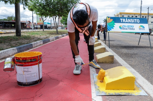 Em tempos de crise, uma boa gestão precisa de planejamento e criatividade como aliados. Com os jovens do Projeto Crescer, a prefeita de Boa Vista, Teresa Surita, tem ao seu lado grandes parceiros no cuidado e responsabilidade com a cidade. Ao finalizar a revitalização das placas de trânsito, os integrantes do projeto começaram agora a pintura dos ciclo-divisores – blocos de concreto nas ciclovias.