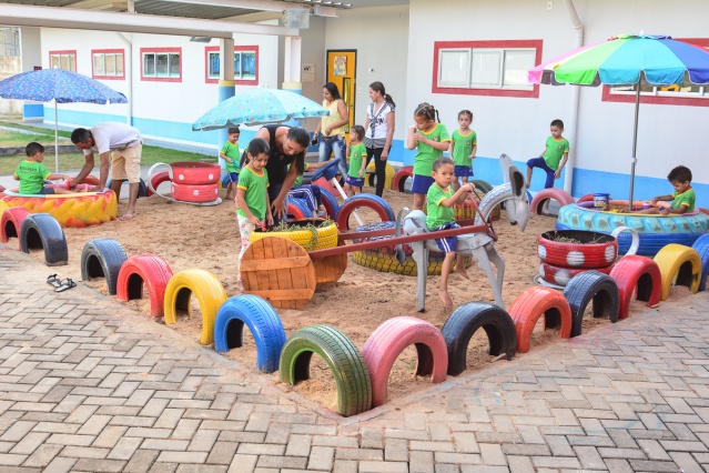 As atividades serão desenvolvidas de forma lúdica e interdisciplinar, possibilitando o contato direto com a terra. Serão trabalhadas atividades de conscientização quanto aos cuidados e preservação do meio ambiente, através da reciclagem de pneus, utilizados para compor o espaço lúdico. O espaço conta ainda com brinquedos e outros objetos artesanais confeccionados de materiais reciclados, grama e areia.