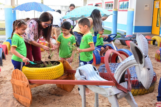 Ao longo do tempo, o crescimento tecnológico e industrial acabou por distanciar as pessoas, superficialmente, da natureza. As crianças ainda bem pequenas se desenvolvem em contato com tecnologias como celulares e tablets . Pensando nisso, a Escola Municipal Waldinete de Carvalho Chaves colocou em prática um projeto que pretende resgatar os hábitos naturais dos pequenos: Brincar e aprender com as mãos na terra .