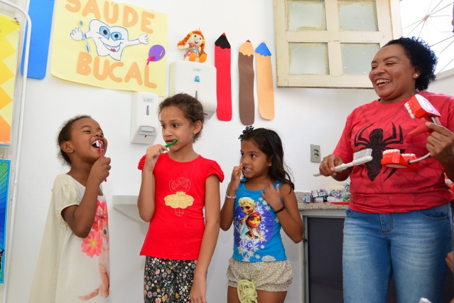 Depois da palestra as crianças participaram de dinâmicas e da escovação supervisionada, além de receberem os kits de higienização bucal. Hadassa Vitória , de oito anos, disse que gostou muito das brincadeiras.