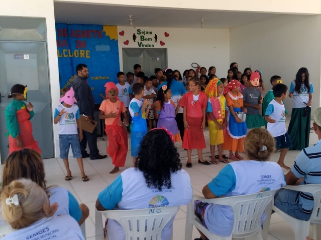 Pelo Cras Centenário, a capoeira, o maculelê e o samba de roda foram as manifestações culturais escolhidas para enriquecer o encontro. Pelo Cras Nova Cidade passaram os personagens do folclore brasileiro.