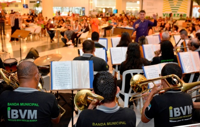 Como parte das comemorações aos 128 anos da capital boa-vistense, a Banda Municipal do Instituto Boa Vista de Música (IBVM) e Coral do Servidor Municipal contagiaram o público na noite dessa sexta-feira, 20, no Pátio Roraima Shopping.
