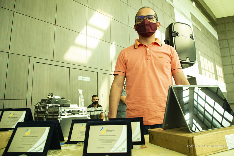 A Prefeitura de Boa Vista entregou nesta segunda-feira, 7, mais de 4 mil chromebooks aos profissionais da rede municipal de ensino, durante solenidade no Teatro Municipal. Ao todo, serão mais de 3 mil equipamentos destinados aos professores e 1.100 para uso nas turmas com os alunos no retorno das aulas presenciais. A ocasião também foi marcada por homenagens com a entrega de placas e bottons aos vencedores do Prêmio Meritocracia 2020.
