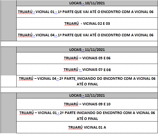 Esta semana, no período de 10 a 12, das 8h às 17h, serão contemplados com a imunização os animais da região do Truaru, conforme cronograma abaixo.