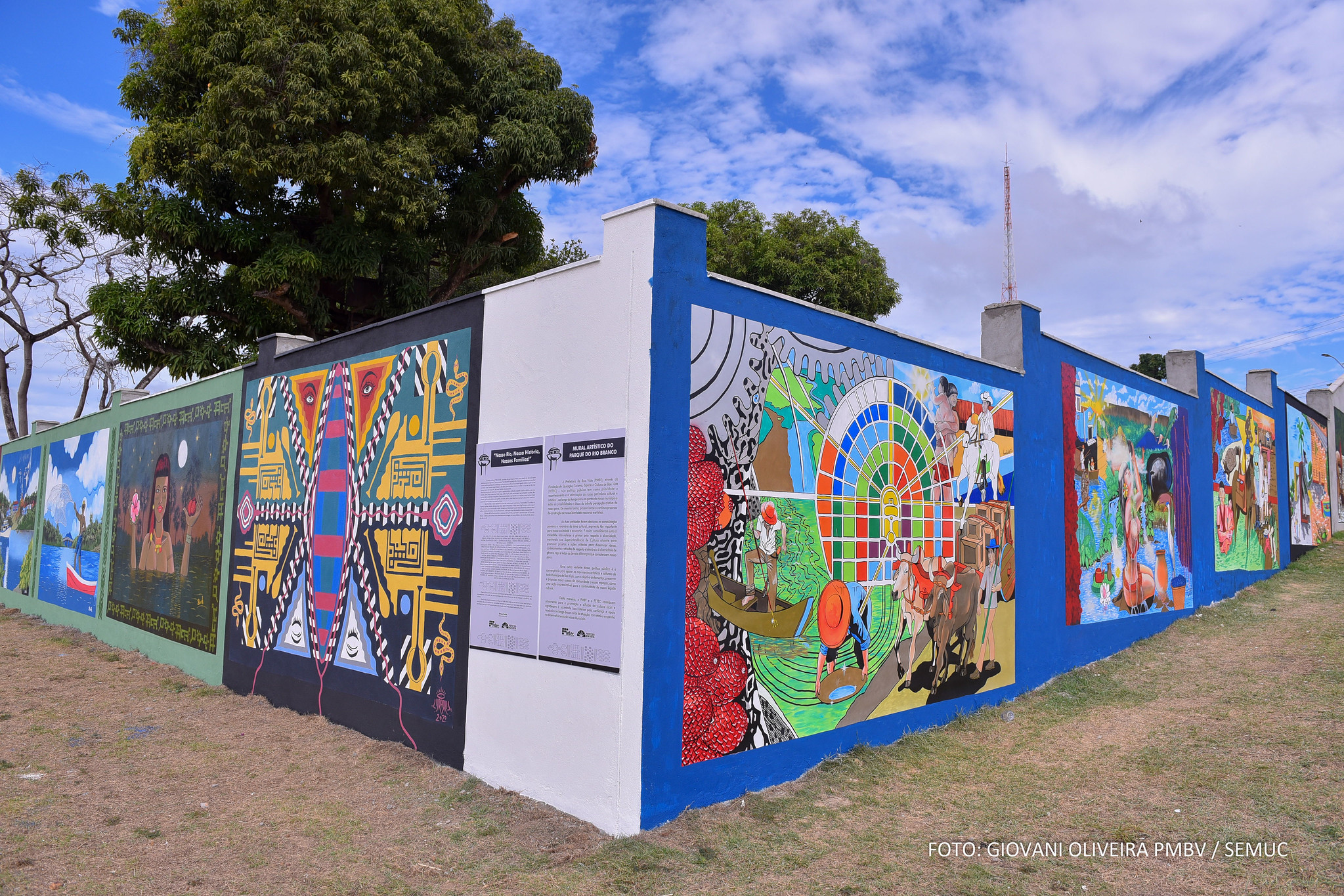 MURAL ARTÍSTICO – O muro do Parque do Rio Branco é uma verdadeira galeria a céu aberto. O local expõe 34 obras de artistas regionais dentro do tema “Nosso Rio, Nossa História, Nossas Famílias”. O mural também é composto por uma obra gigante do artista reconhecido em todo o mundo, Eduardo Kobra, que retratou as diversas características do povo, da cultura e das belezas de Boa Vista, com o hiper-realismo e os famosos traços coloridos que marcam seus trabalhos.