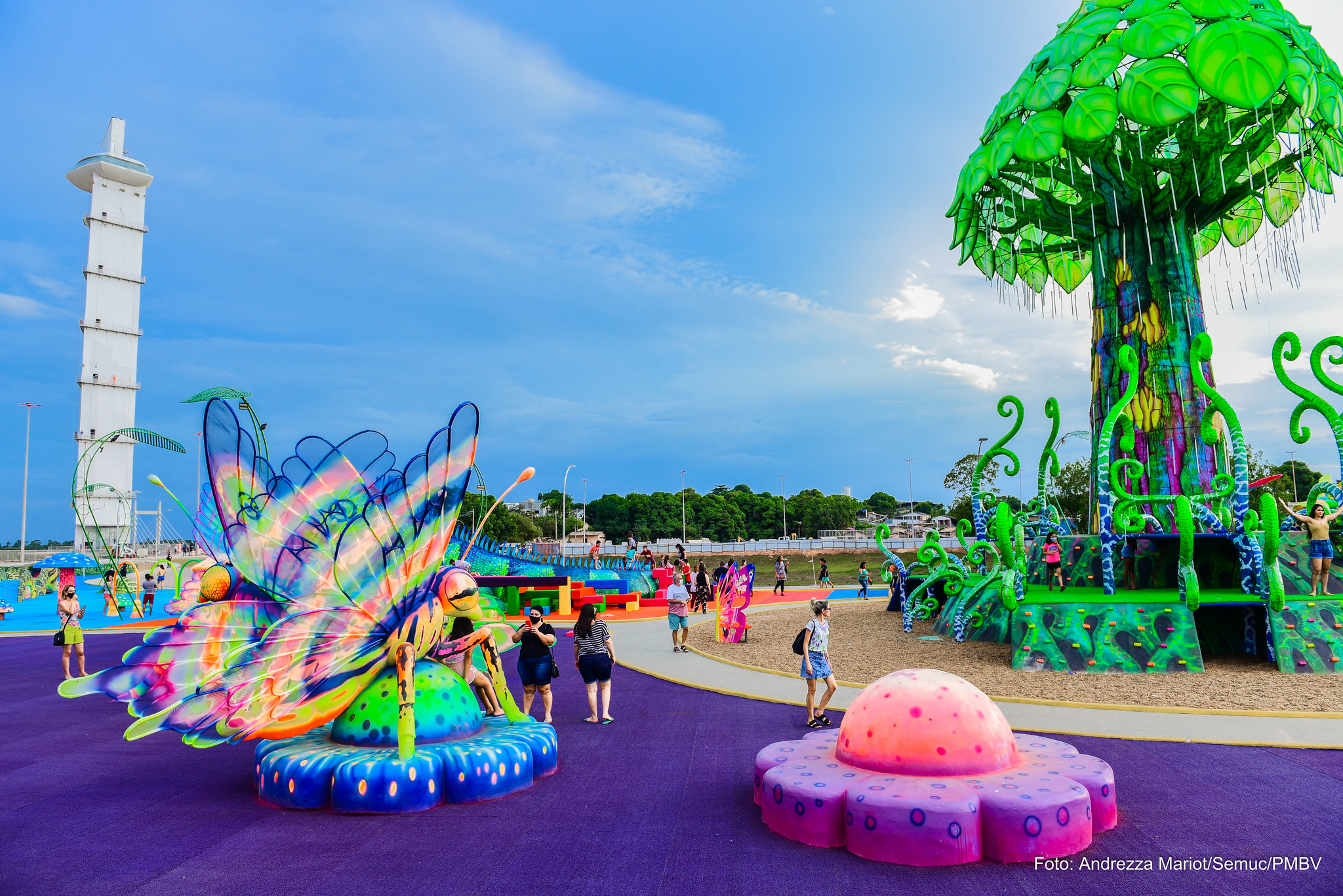 A MAIOR SELVINHA – Além disso, o Parque do Rio Branco abriga a maior Selvinha Amazônica de Boa Vista. Em um cenário colorido, lúdico e encantador, com mais de 160 elementos artísticos, entre esculturas de animais típicos da Amazônia, dentre outros atrativos para as crianças. São oito cenários, contando com área seca e molhada.