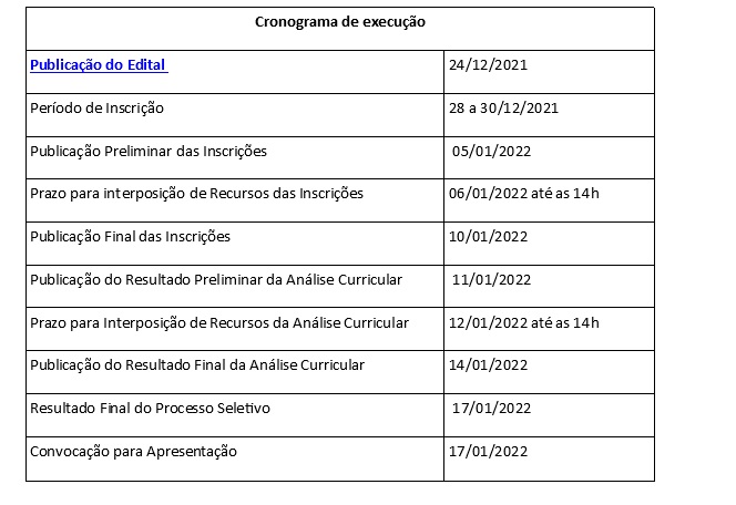 No link estarão disponíveis o Edital, a ficha de inscrição online e os procedimentos necessários para realizar a inscrição. O prazo de vigência do seletivo será de 12 meses, podendo ser prorrogado. Lembrando que 10% das vagas são destinadas a pessoas com deficiência.