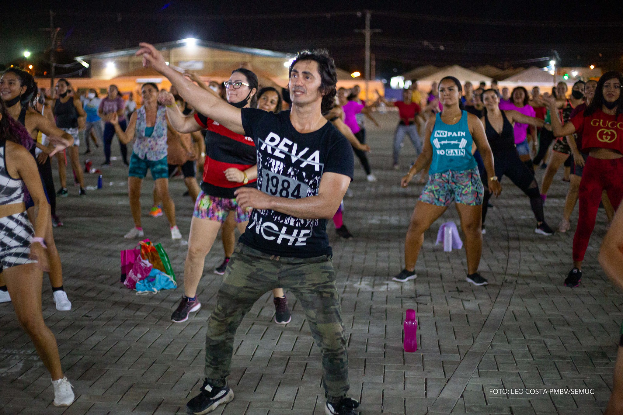 Durante o evento, seis professores da Fundação de Educação, Turismo, Esporte e Cultura (Fetec), se revezaram no palco com diversas coreografias ao som da banda Pegada de Patrão. Igor Felipe é um dos instrutores e está há três anos no programa.