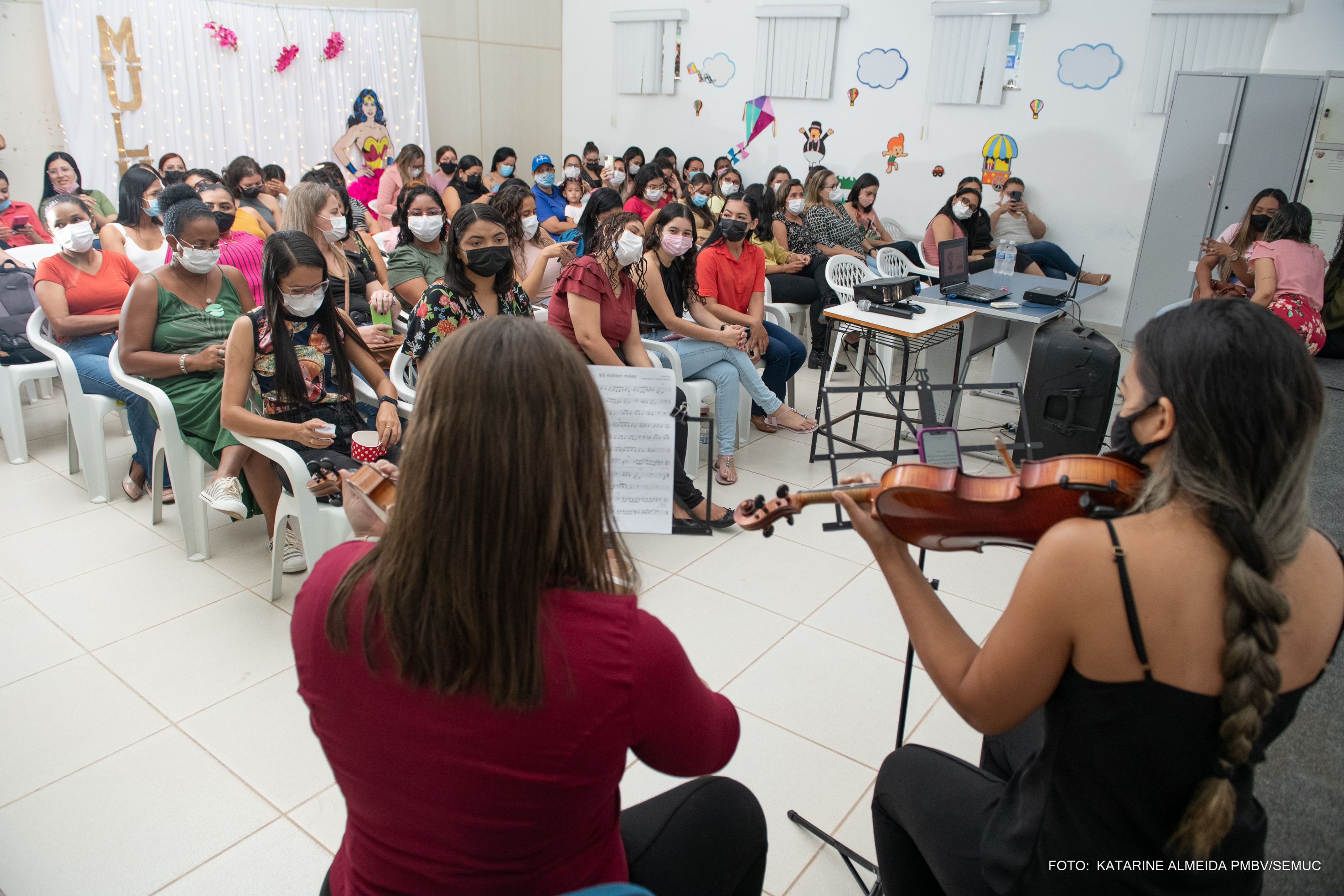 Para celebrar o Dia Internacional da Mulher nesta terça-feira, 08, a Secretaria Municipal de Projetos Especiais promoveu na sede do Programa Família que Acolhe (FQA) um encontro especial para as servidoras e beneficiárias, com uma palestra sobre saúde íntima. Além disso, o evento contou com a participação de duas violinistas do Instituto Boa Vista de Música (IBVM).