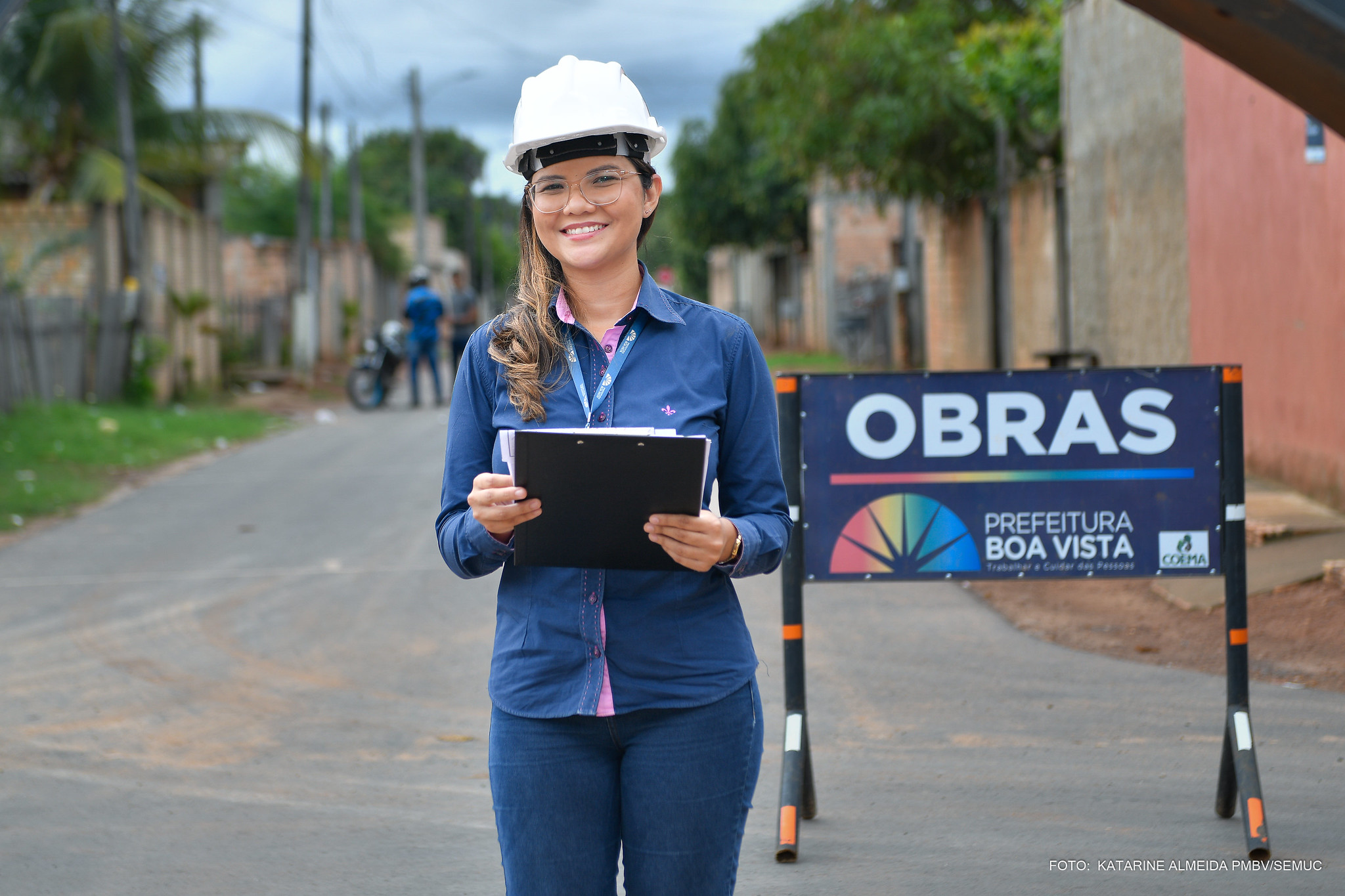 Acompanhar e fiscalizar obras públicas é um trabalho árduo, mas feito diariamente e de forma competente pela engenheira civil Byatriz Cordeiro Lédo, que está desde 2017 trabalhando na Secretaria Municipal de Obras. Ela conta que entrou na secretaria como estagiária e, logo após formar em Engenharia Civil, foi contratada como fiscal de obras.