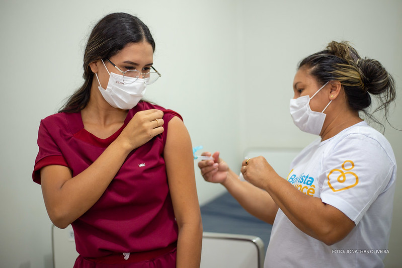 A farmacêutica, Daniela Ester de Lima Xavier, da UBS Ione Santiago, foi uma das imunizadas desta primeira etapa e destacou que essa iniciativa da prefeitura em priorizar a vacinação dos trabalhadores de saúde no próprio local de trabalho é importante e muito gratificante.