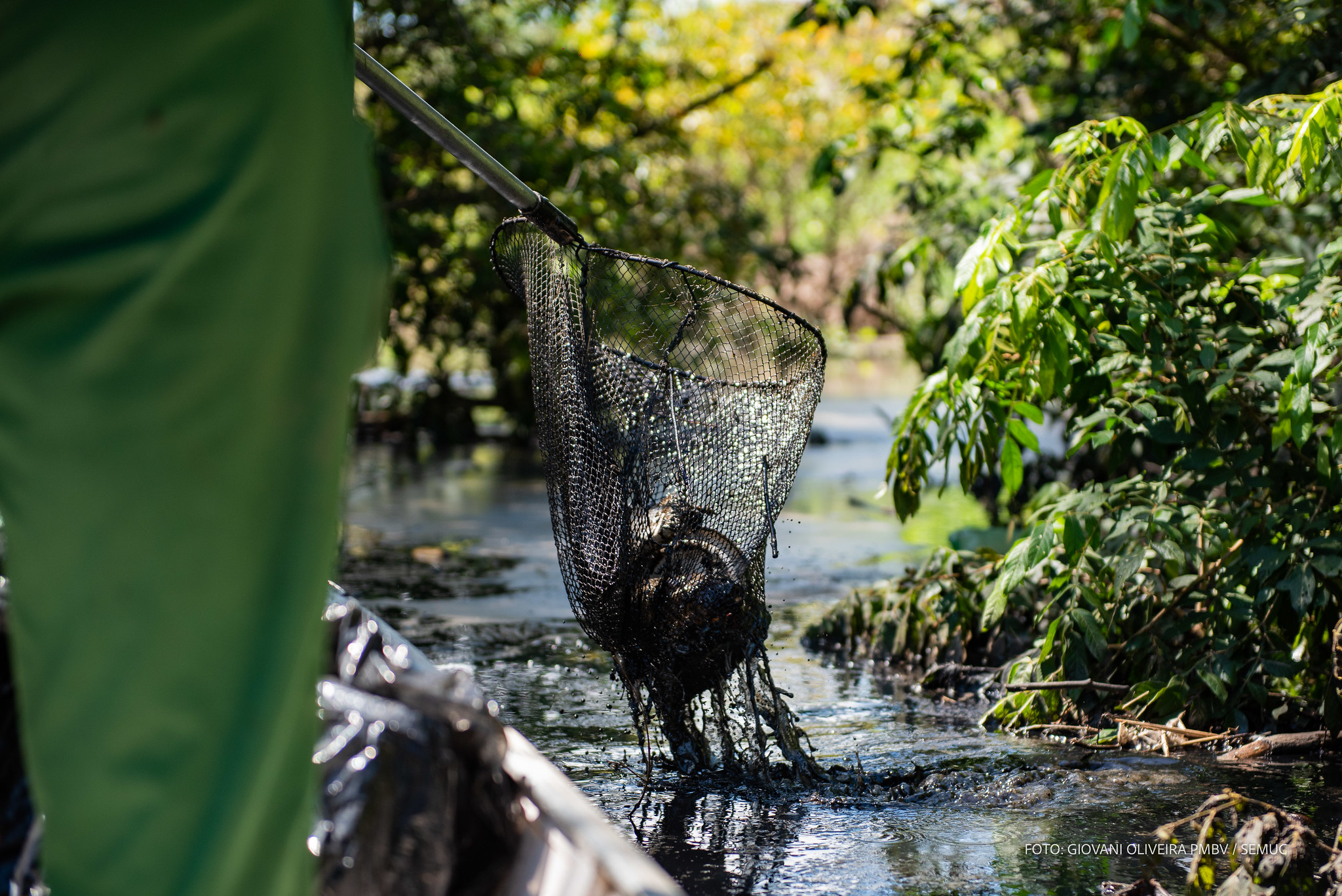 Na semana passada, no Igarapé do 13 de Setembro, fica localizado na última rua do bairro, as equipes encontraram bastante óleo queimado e garrafas pets. Roger Hernandes, um dos integrantes da equipe de limpeza, trabalha há três anos e se surpreende com o que encontra às margens dos rios.