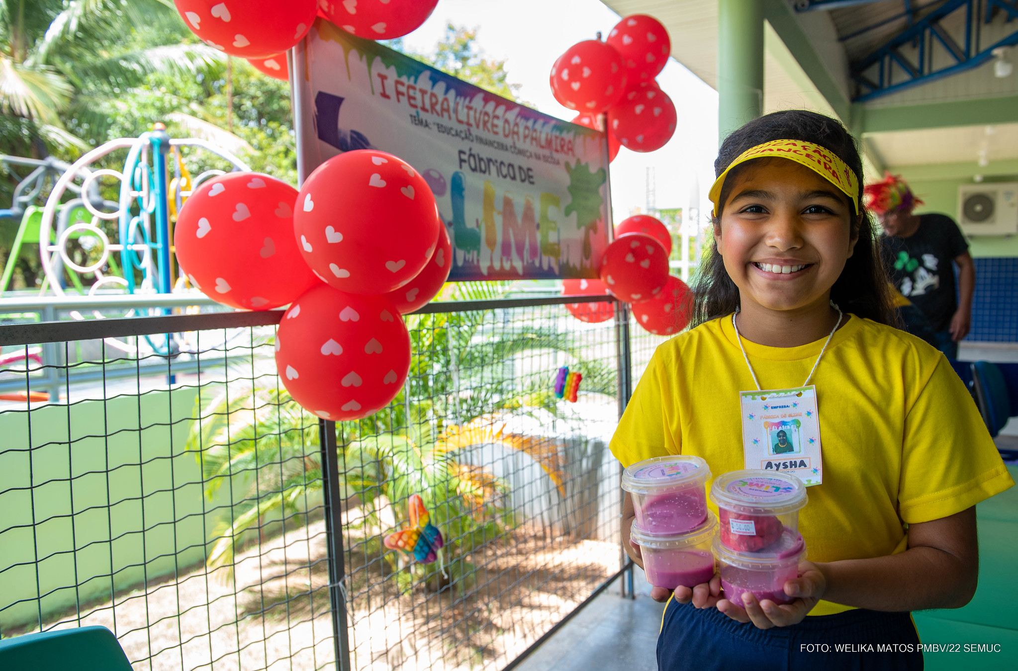 A aluna Aysha Sofia, do 3° ano, montou a Fábrica de Slime com a sua turma. “Aprendemos a fazer em uma semana. Pensamos em colocar em potes e com o nome da nossa barraca, igual como encontramos na loja. É muito bom vender e aprender. Estou adorando participar da feira”, disse.