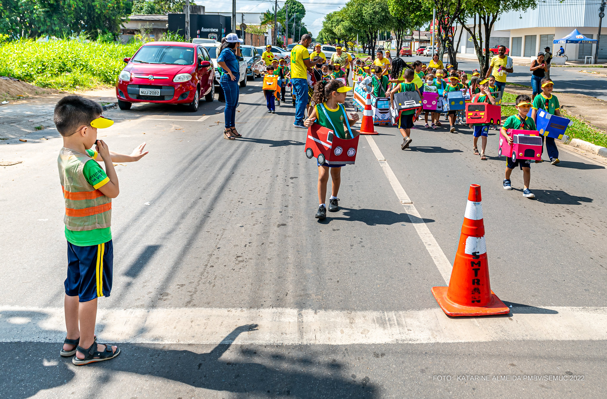 No encerramento da Semana Nacional do Trânsito, os alunos do 1º e 2º Ano da Escola Municipal Isete Evangelista Albuquerque, aprenderam sobre o trânsito de um jeito diferente, nesta quarta-feira, 28. Com o projeto “Brincando sobre o Trânsito na Educação Física”, a criançada fez um passeio na avenida Nossa Senhora de Nazaré, com os veículos de papelão produzidos por eles, com a ajuda dos pais.