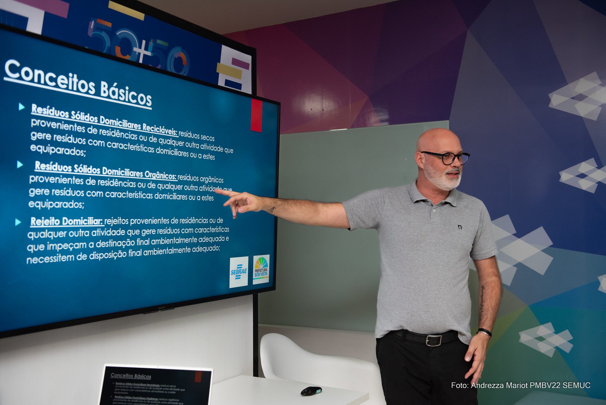 A palestra foi mediada pelo consultor ambiental da Prefeitura de Boa Vista, Marcelo Cury, que acompanha a implantação do plano desde a sua elaboração. “Durante o workshop, esclarecemos a população, aos empreendedores e pessoas que tem o interesse em trabalhar com resíduos recicláveis, quais são as oportunidades de negócio que o PMGIRS vem trazer para o município de Boa Vista a partir da política de gerenciamento desses resíduos, trazendo para realidade de Boa Vista essa temática que possui impacto socioambiental”, destacou o consultor ambiental.